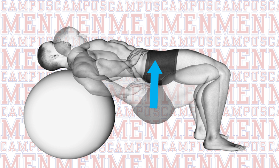 Slowly raise your hips upward, rolling your shoulders and head backward onto the ball