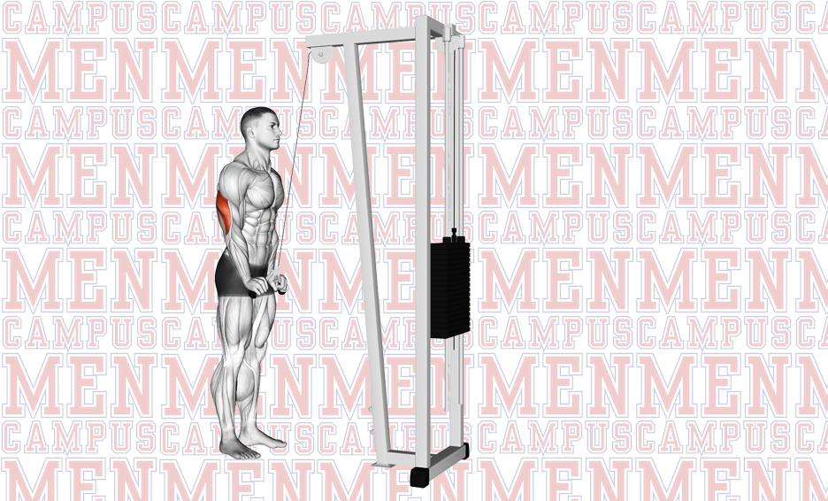 Main Movement Steps for Triceps Pushdown - Full Extension Bar Attachment - Step