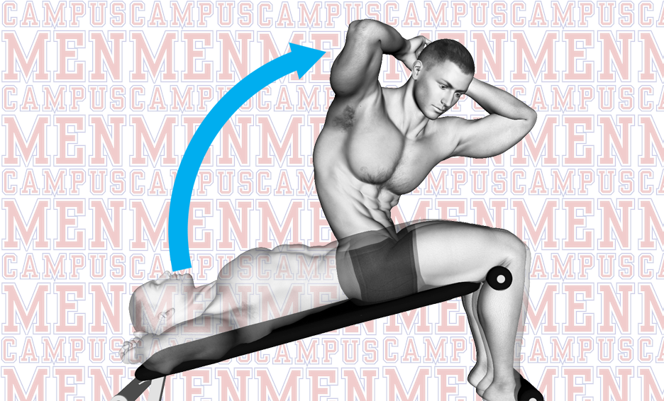 Main Movement Steps for Decline Oblique Crunch on a Sit-Up Bench - Step 2