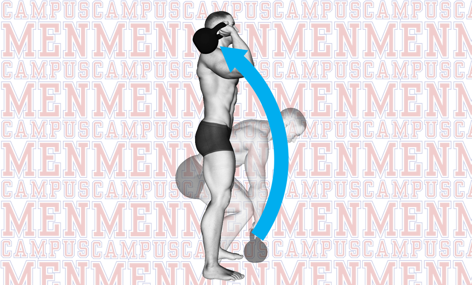 Exhale while you flex your legs and hips to raise upright and lift the kettlebell.