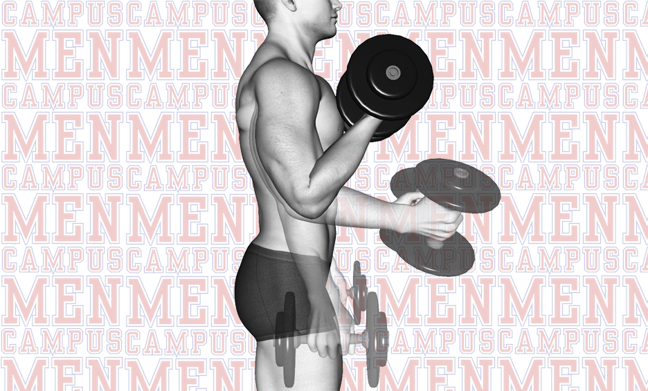 ...while twisting the dumbbell. (When your bicep is fully contracted and the dumbbell is near your shoulder, your palms should be facing up.)