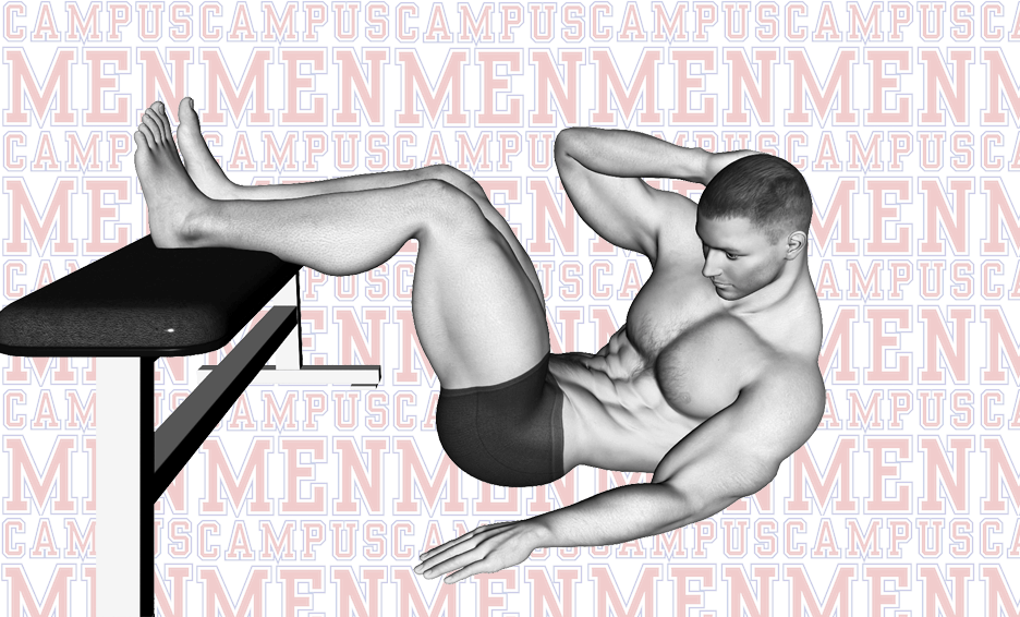 Main Movement Steps for Oblique Crunch with Feet Elevated on a Bench - Step 2