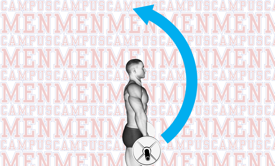 Keeping your entire body rigid, exhale as you raise the bar up using an arc motion
