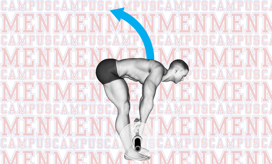 Without bending your knees, push down on your heels while exhaling as you power the bar upward