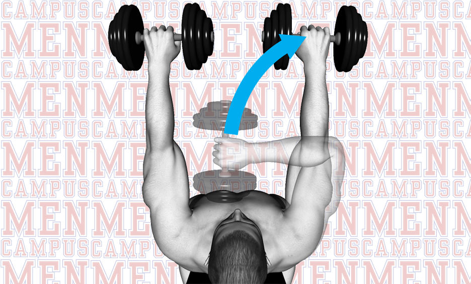 Keeping your core muscles tight, exhale while you bend one arm at the elbow to allow the dumbbell to gradually drop downward and inward, using an arc motion...