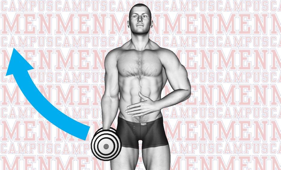 Keeping your core muscles tight, exhale while you flex your middle delt while raising the dumbbell directly sideways and upwards