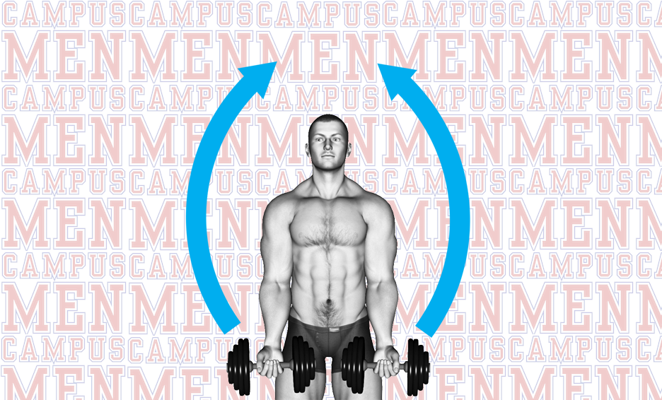 Keeping your core muscles tight, exhale while you flex your deltoids to raise the dumbbells upwards and in line with your body.