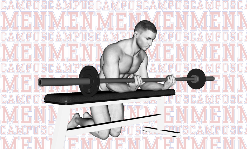 Main Movement Steps for Kneeling Palms-Up Barbell Wrist Curl Over a Bench - Step
